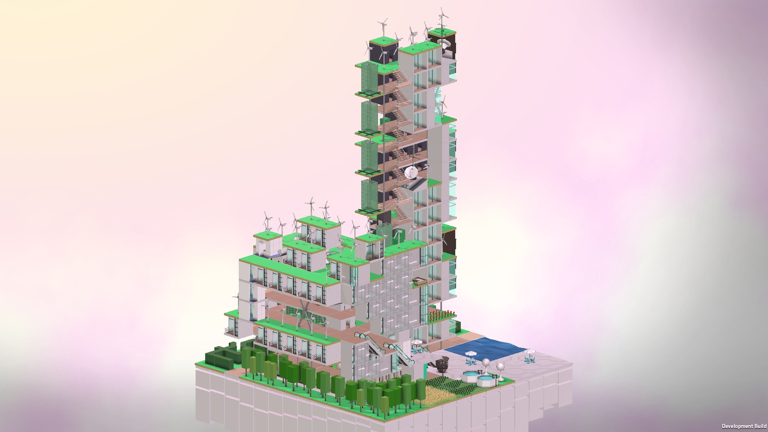 Будівельний симулятор Block'Hood пропонує гравцеві створити віртуальну добросусідську функціонуючу спільноту з блоків різної форми і призначення. Аксонометричний вид в поєданні із зміною дня і ночі додає ефектності. Будівля піддається впливу навколишнього середовища, її необхідно наповнити різноманітними функціями і зв'язками, словом - чудовий симулятор міського організму.
